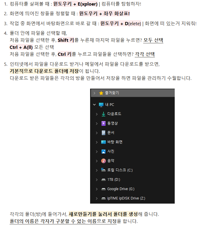 다운로드 받은 파일들은 각각의 방을 만들어서 저장을 하면 파일을 관리하기 수월합니다. - 각각의 폴더(방)에 들어가서,