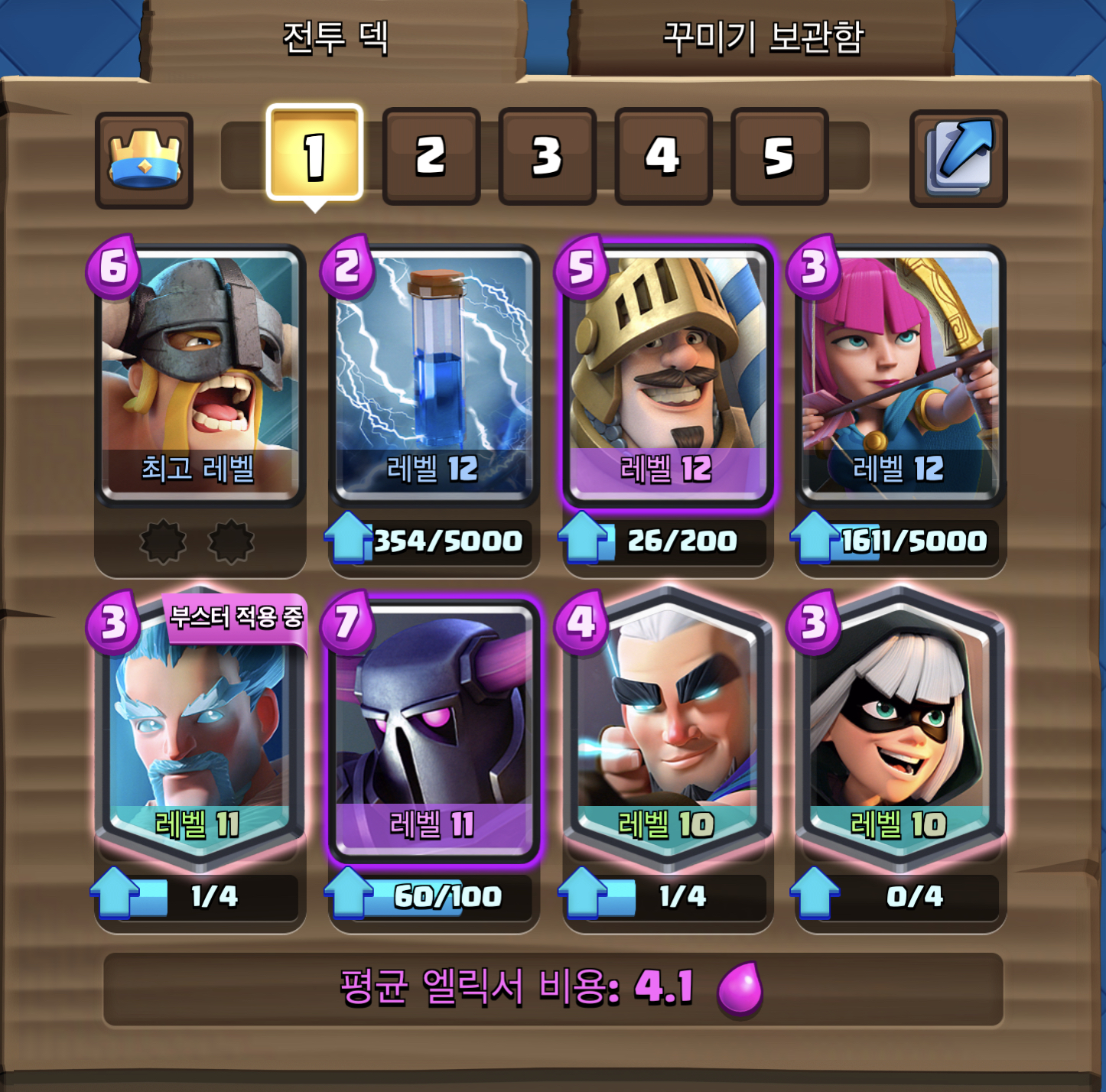 평균 엘릭서 비용이 4.1이라 비교적 무거운 덱인데, 트리플 엘릭서로 인해서 쉽게 엘릭서를 모을 수 있어서,