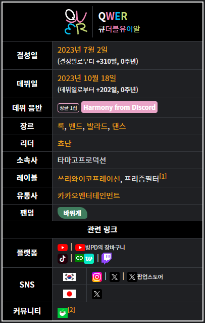 게임할 때, 사용하는 q w e r 이 아닌, 2023년 10월 18일에 데뷔한 타마고 프로덕션 소속 4인조 걸밴드 입니다.