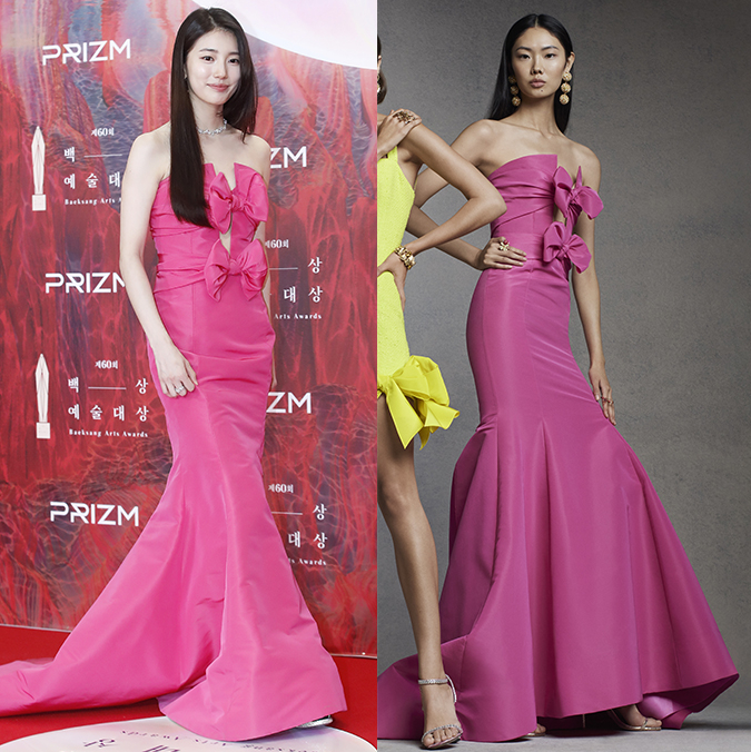 핫핑크·아이보리 드레스 입고 우아한 매력 발산…화려한 다이아몬드 주얼리로 포인트가수 겸 배우 수지가 제60회 백상예술대상에서 아름다운 두 가지 드레스 룩을 선보였다.지난 7일 오후 서울