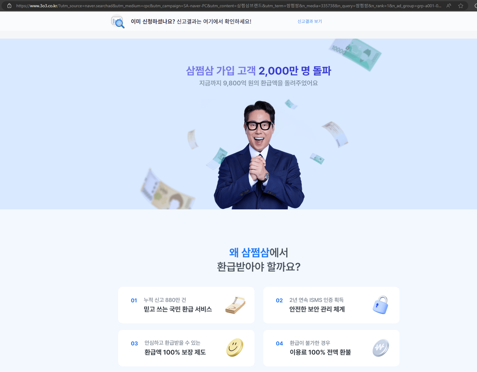 환급금 조회! 환급금 돌려드립니다! 라는 문구의 카피가 계속해서 나왔습니다.