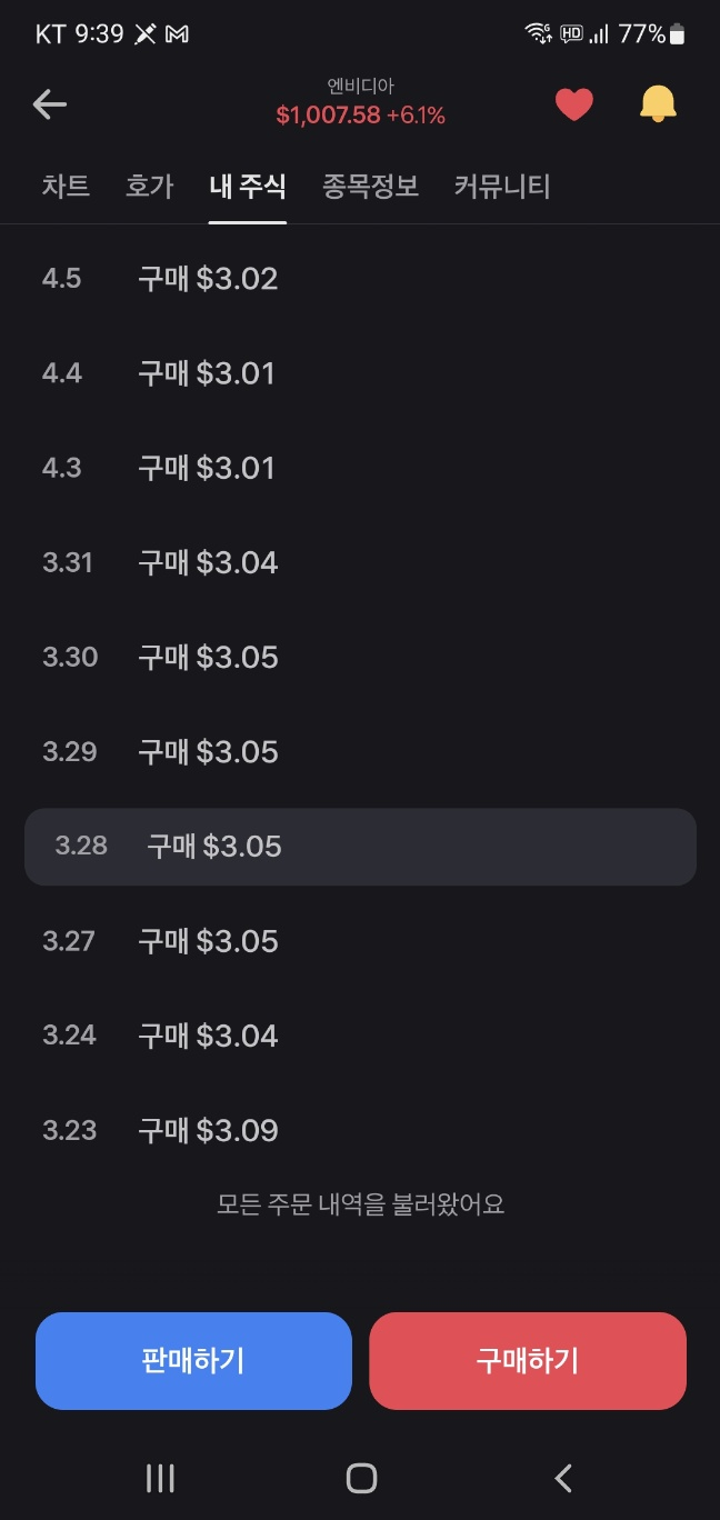 비록 얼마안되는 것이지만, 토스 계좌에 작년 3월부터 $3 달러씩 구매해서 1.6주하던 엔비디아를