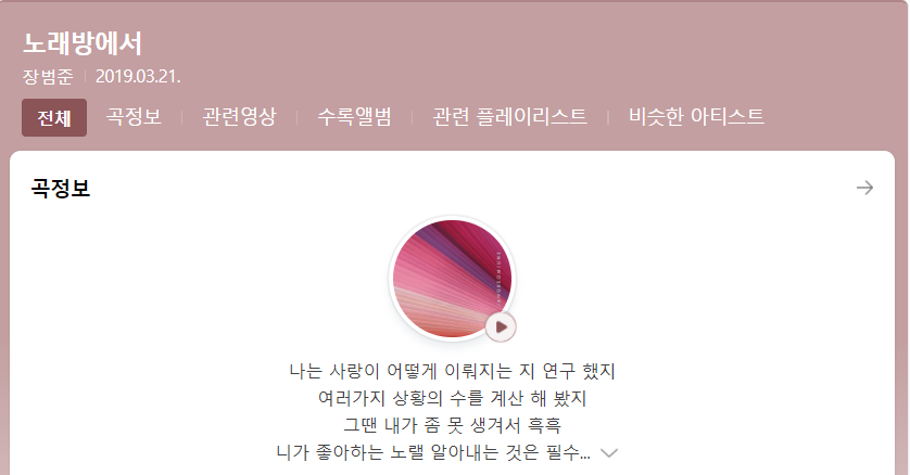 가사도 너무 좋고 목소리도 너무 좋고, 히든싱어에 나온 장범준 편을 보고 좋아하게 되었습니다.