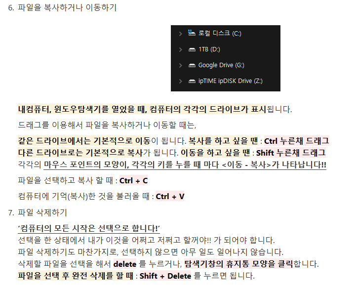컴퓨터 단축키 및 복사와 이동하는 방법 그리고 삭제